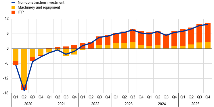 Notes: Non-construction investment excludes Irish IPP. Components do not sum to the total owing to the exclusion of the biological resources component. The latest observations are for the fourth quarter of 2025.