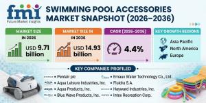 NEWARK, DE, UNITED STATES, April 1, 2026 /EINPresswire.com/ -- The global swimming pool accessories market is projected to grow steadily over the next decade, expanding from USD 9.71 billion in 2026 to USD 14.93 billion by 2036, registering a CAGR of 4.4%, according to the latest analysis by Future Market Insights (FMI). Growth is fueled by increasing residential pool installations in suburban housing markets, ongoing commercial pool renovation cycles, and rising investments in outdoor living spaces, which elevate per-pool accessory spending on filtration, lighting, safety, and recreational enhancements.