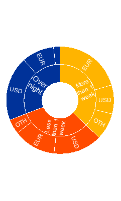 b) Euro area banks’ repo liabilities to NBFI entities, by currency and maturity