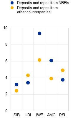 Granular datasets shed light on how linkages between banks and NBFI entities differ by entity size, business model, geography, currency and maturity. This special feature combines multiple trade and exposure-level datasets to shed further light on key interlinkages between euro area banks and NBFI entities and highlight the associated systemic risks to financial stability. The analysis has limits, however, since it investigates neither ownership links nor the role of NBFI entities as credit insurers or protection providers. Future work may examine these aspects and take stock of existing work on ownership links.[9] In the following sections, the risks arising from liabilities to NBFI entities are investigated first, followed by those risks emerging from banks’ provision of leverage to NBFI entities. Last, the risks arising from banks’ intermediation role in financial markets are discussed.