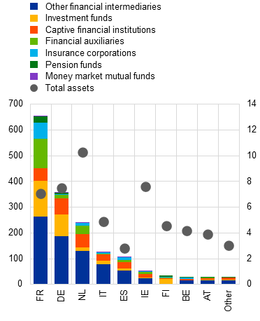 Notes: The banking sample comprises all euro area significant institutions. Panel a: OFI stands for other financial intermediaries; IF stands for investment funds; CFI stands for captive financial institutions; FA stands for financial auxiliaries; IC stands for insurance corporations; PF stands for pension funds; MMMF stands for money market mutual funds. Panel b: the country is the domicile of the bank at the highest level of consolidation.
